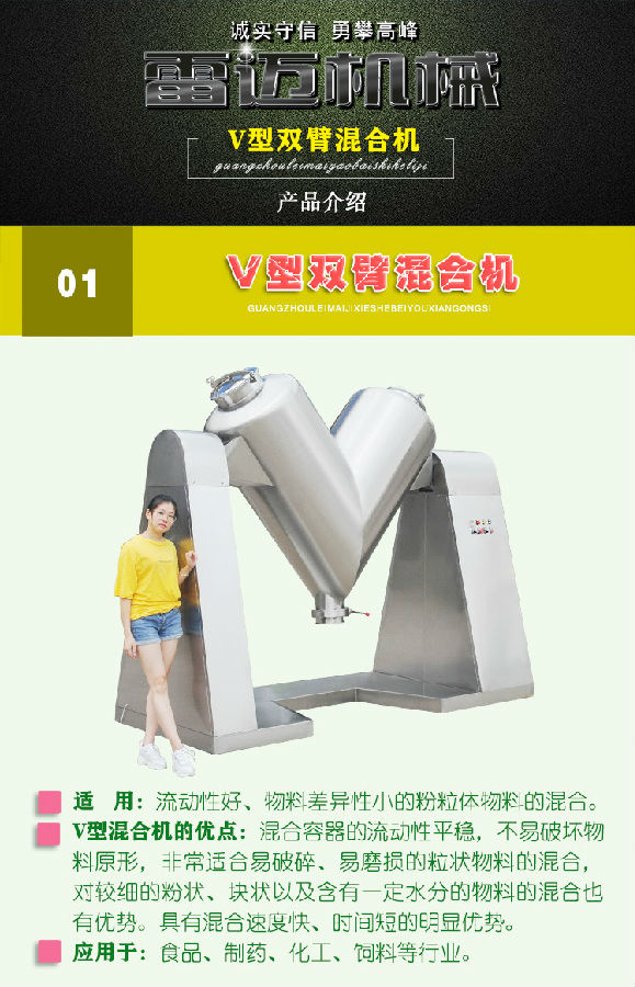 用於製藥、化工、電子、食品、飼料等行業對粉狀、顆粒狀等物料的均勻混合。