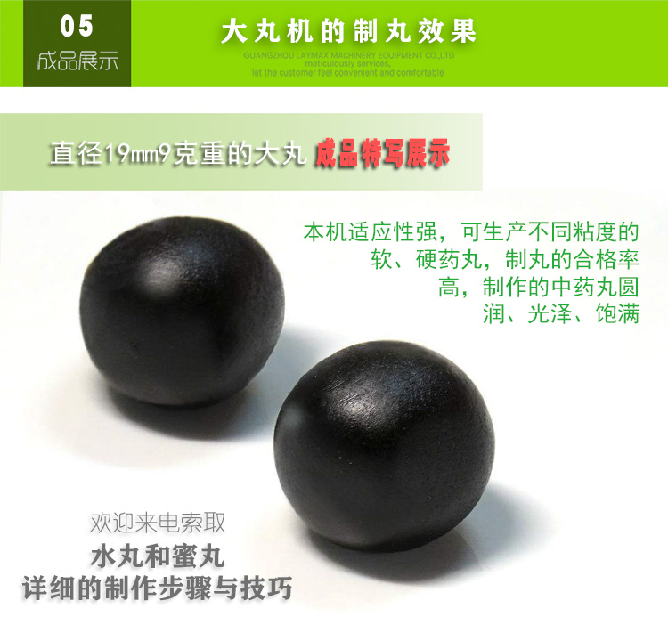 大丸機是製藥行業專用的中藥製丸機設備。集壓餅、搓條、製丸功能為一體的機械,其主要的特點是它屬於電動型的,跟傳統的手工製丸產品相比,速度更快,效率更高,製丸效果更好,成品藥丸具有大小均勻,顆粒圓滑、飽滿的特點。機械本身帶有拋光功能,既方便又實用。且與藥物接觸的部分及外殼全部采用不鏽鋼,符合GMP標準。
